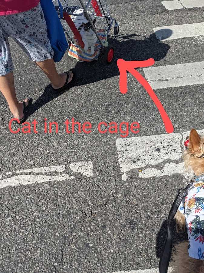 🦊 ショッピングカートに入っている🐱ちゃん、ボクを睨みつけている