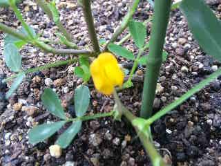 落花生の花。この花が地中に埋まって?マメになるらしい。「花が落ちて生まれる豆」だから「落花生」なんだってよ。楽しみやね~