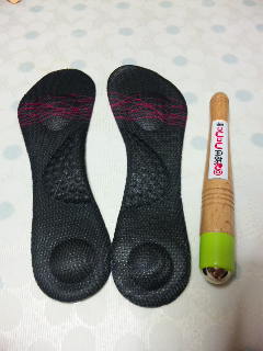 股関節の痛みに、あの奥~のぜったいに手もみで届かない部分のハリやコリをどうやって取り除けばいいのか。親指をぐぐ~っと押し付ける。。。このままじゃ指が折れてしまうではないのってことで、コロコロ棒を買いました。よく足裏をゴリゴリやられるでしょ、それと同じ棒。はぁ~ぶぅ~足に合わない靴が一足あるので、それには、ツボ押し効果のある中敷き。これであの靴もはけるかにゃ。