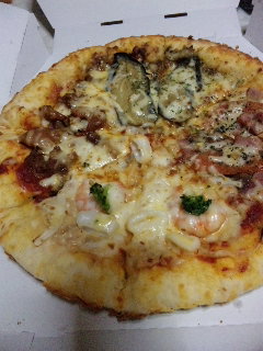 ピザ。ケーキとピザと寿司とチキンを天秤にかけたら、ピザが勝った。というよりは、バイトの帰り、ピザ屋の前を通りかかっただけなんだけどね。お友達からクリスマスプレゼントももらったし。昨日のDSは楽しかったし。世は満足じゃ
