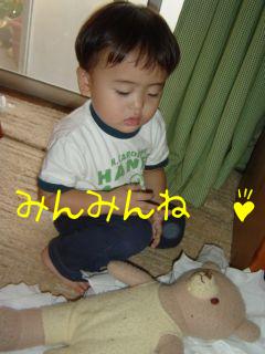 6月1日(水)天気昨夜はグッスリ朝まで寝てくれました~O(≧∇≦)O イエイ!!そして今朝は10時半に起床。早速マージフォンで遊んでたわ(≧m≦)ぷっ!お昼を食べてからは勝手にベランダに出て遊んだり、野菜苗が植えてあるプランターの土をほじくり返したりと余計な事ばっかりしてくれました(´Д`|||) ドヨーンでも散らかった土を自分で掃いてたのには爆笑だったけど(≧m≦)ぷっ!私の宝物のテディベアをしまっている棚が何となく臭かったので(ノДT)アゥゥ喚起を兼ねてベアも棚の外に出して日光消毒ヾ(;´▽`A``アセアセそしたらヤツが邪魔してきたぞ~~~!ε-(ーдー)ハァクマを並べて置いといたら、自分が可愛がってるクマちゃんも持ってきて一緒に並べてみたり(-L-)ククククマチャンの首を絞めてみたり(ノДT)アゥゥ、全部抱えてみたり・・・(画像参照)すっかり戯れておりました(゜Д゜) ハア??翼が持ってるベアは私が昔作った物です( ̄∀ ̄*)イヒッ今も作りたくてウズウズしてるんだけど・・・そんな時間無い~~(ノд・。) グスン全然作ってないから腕も落ちただろうなぁ~(つд・)エーンそして夕方からはテレビタイム♪今日は「おかん」を見ながらノリノリでした!ニャハハ☆(゚∇゚☆)(☆゚∇゚)☆ニャハハ「アイアイ」を歌ってたんだけど、翼は「ナイナイ」と歌っておられました。プププッ(* ̄m ̄)ノ彡☆ばんばん!!「アイアイだよ」って言っても「ナイナイ」を連発(--;)ついでに踊ってたけど・・・どの場面かは不明・・・。←ぱわわぷ今日も最初はノリノリだったけど、食べてる途中だったプリンに気を取られて後半は全く踊らなかったヨ~☆ちなみに翼が手に持ってるのは洗濯石鹸の計量スプーンですので(笑)あしからず・・・(≧m≦)ぷっ!久々に→今日は萬斎さんが出てきたら初期のようにビビってました(笑)どんだけ怖かったか表情を見れば分かるかな??「いいとも」でもこれぐらいビビってほしかったのになぁ6時から私も行動開始してお風呂沸かして夕食の支度してと大忙し。翼は勝手に遊んでてくれたので助かったわ~(人´∀`).☆.。.:*・マージフォンを肌身離さず(≧m≦)ぷっ!マジレンジャーのビデオを見せてあげたら「同じ!」とばかりにマージフォンを持ってすっかりメンバー気取り。プププッ(* ̄m ̄)ノ彡☆ばんばん!!私もいっしょに見てると・・・ヤバイ・・・。ハマリかけてるヾ(;´▽`A``アセアセ隣の部屋で洗濯物を畳んで、テレビの部屋に戻ってみると・・・お出かけですか???帽子まで被っちゃって(≧m≦)ぷっ! おまけに犬のオモチャの紐を持って散歩気分だしo(*^▽^*)oあはっ♪でもね~ワンちゃんひっくり返ってますよヾ(-д-;)ぉぃぉぃ6時半過ぎに旦那が帰ってきたので、お風呂に入って7時半には夕食を食べ8時過ぎには布団の中(笑)今日もガタンのビデオを見ながら8時30分には寝ちゃったよ~!!( ̄∀ ̄*)イヒッ久々の8時台!嬉しい~~~!!v(o ̄∇ ̄o) ヤリィ♪旦那は9時前から洗車に出かけて行きました(-L-)ククク私は一人ノンビリと自由時間満喫です~O(≧▽≦)O ワーイ♪