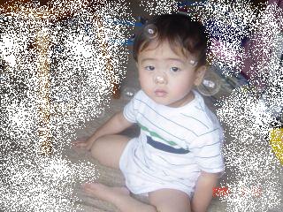 5月26日(木)天気★⌒☆⌒★〓☆ 祝 ☆〓★⌒☆⌒★本日20000カウント突破いたしましたぁ~~!!!!バンザーイ \(≧∇≦)/\(≧∇≦)/ キャァ♪そして*:・゚★o(´▽`*)/♪有難う♪\(*´▽`)o゚★,。・:これもひとえに毎日遊びに来て下さる皆様のお陰です。皆様様様です(..)(^^)(^。^)(*^o^)(^O^)ウレシーーー!!飽きっぽい性格なので、直ぐに止めちゃうかと思ったけどかれこれ9ヶ月も続けてこれました。奇跡に近い(笑)これからも皆様から愛される(笑)楽しいブログにして行きたいと思います♪次は30000カウント目指して日々頑張りたいと思いますので引き続きムーニーエミッチ&翼デッコ王子、そして「ムーニーmamaのおうち」共々よろしく(^ー゜)ノお願い致します。∩( ´∀`)∩ドウゾ (っ´∀`)っ))ヨロシクさて・・・20000カウントを踏んで下さった方は誰なのかしら?(人´∀`).☆.。.:*・と思い、アクセスを調べてみました。ら「ムーニーmama」さんでしたぁ~!!ってオマエやんけ!!!ΣΣ(゚д゚lll)ガガーン!!思わずズッコケてしまいました(´Д`|||) ドヨーンまさか自分で踏んでしまったとわショック☆☆ショックなんちゅ~オチ。(;´д`)トホホさて、今日は旦那がお休みだったので何処かにお出かけでも・・・と思ったけどな~~~んだかエンジン掛からないわ(ノДT)アゥゥ旦那に子守りを頼んで、私は日中に昨日のオフ会の日記を更新してやっとこさ完成~!ヾ(〃^∇^)ノわぁい♪翼は・・・ベランダに出てボール遊びしてたよ☆あとは植木をイタズラしたり・・・なんかジョーロに刺さってるし・・・Σ( ̄□ ̄;)ナント!!トマトの茎は折っちゃうし||||||||||||||(* ̄ロ ̄)ガーン||||||||||||||||全く!ンモォー!! o(*≧д≦)o″))結局ダラダラしちゃって、出かけるのも面倒になってきたので今日はヒッキーしてましたぁ。(いい天気だったんだけどねぇ~ヾ(;´▽`A``アセアセ)翼も私と旦那と交互に相手してもらって遊んだり、一人でプラレールで遊んだりして過ごしてました♪♪4時からはテレビタイム☆彡 今日も小林体操を踊ってくれるかと思ってスタンバイしてたんだけどほとんど踊ってくれなかった(ノд・。) グスン所々だけ・・・パパがいたから照れてたのかも(///∇//)テレテレなぜだかパパの前では踊ったりしないんだよねぇ~~。(/ω\) ハジカシーのかな??恥ずかしがるような相手かよ??「私のきもち」を見てたら「顔の体操」で的場君が出てきましたよね。こんな顔して見てた(≧m≦)ぷっ!物凄いしかめっ面だよね(-L-)ククク怖いのかしら??オマエの顔の方がよっぽど怖いっちゅ~ねん!!お約束の萬斎さんを見てる図→以前のようには泣いたりしなくなったけど、テレビに近付こうとすると泣く(笑)結局は慣れてないって事か・・・ヾ(;´▽`A``アセアセ夕方からグズグズ言い出したので、7時前にはお風呂に入っちゃいました。【~~~(´▽`A)~~~】 イイユダナ~♪で、出てきたらオムツも穿かずにサングラスを持ち出してきて(笑)気持ち悪いけど・・・ 可笑しい!!(笑)自分でかけたら逆さまになっちゃって(≧m≦)ぷっ!それだけでも( ̄0 ̄)マ( ̄。  ̄)ヌ( ̄、 ̄)ケなのに、ちょっとズレてる所が益々マヌケっぽくてプププッ(* ̄m ̄)ノ彡☆ばんばん!!あたしゃ~笑いが止まらなかったよ(ノ∇≦、)ノ彡☆ キャハハ!!バンバンッ!!右の写真なんて、最高にマヌケじゃない??素っ裸だし(-L-)ククク このポーズも何なんだよ???(T▽T)アハハ!サングラスかける前にオムツ穿きなよって話ですわ・・・。変な子だわヾ(;´▽`A``アセアセ←チビヤンです(≧m≦)ぷっ!迫力ねぇ~~なぁ~~★夕食を食べて、9時前には布団を敷いて寝る態勢に。私のお腹を枕代わりにして9時過ぎに終了しましたぁ~!やっぱり眠かったから、コテって寝ちゃった( ̄∀ ̄*)イヒッ今日もグッスリ寝てちょうだいね(゚▽゚*)ニパッ♪では最後も・・・チビヤンキーで失礼します(笑)どーしてうちの子ってこんなにバカなんだろう??フー ( ̄‥ ̄) = =3