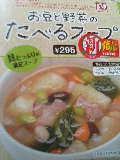 朝晩がだいぶ冷え込んで来ました。周りでは風邪が流行ってて自分もいつ風邪をひくかビクビクする毎日です・・・。そういう時こそ栄養のバランスを考え野菜をたくさん摂ってビタミン強化といきたいところですがいかんせん外食が多いので十分野菜がとれません。ということでお昼だけでもお野菜を、と思いまして栄養たっぷりの野菜スープ生活を送ろうかと思います。野菜スープ生活一日目はセブンイレブンで見つけた「お豆と野菜の食べるスープ」このネーミングで買いました妙にそそられますお豆と野菜。 開けると二段重ねになっていて下層がスープ上層が湯通しした野菜スープだけレンジで温めてから野菜と投入して食べてねというノリです。↑投入後 コンソメベースでベーコンが入ってたのでおいしかったです普段絶対食べないような「これ何豆?」って豆も目をつぶって食べれました(食わず嫌いです)スープはすごいね。野菜のうまみをじっくり味わってこの冬乗り切りたいです。