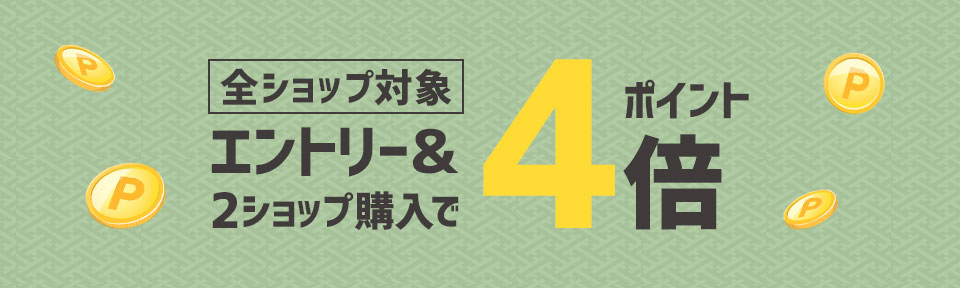 キャンペーンページでエントリーを行い、楽天市場で2ショップ以上のお買い物(各1,000円以上)を行った際に、通常の4倍(+3倍)のポイントを獲得することができます。(上限1,000ポイント)