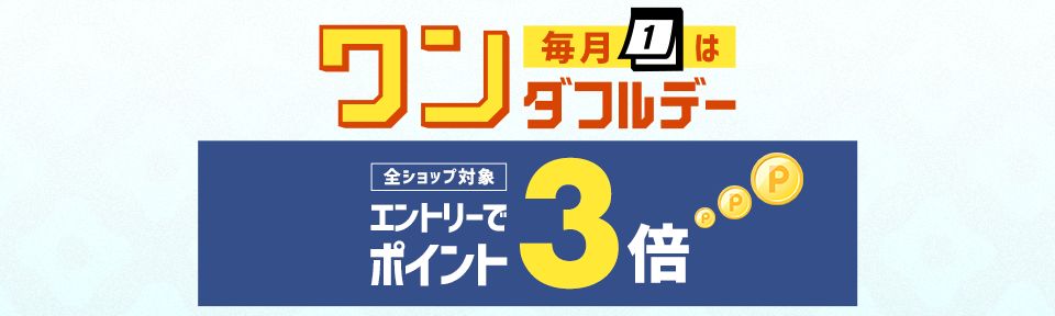 毎月1日は、キャンペーンページでエントリーを行い、楽天市場で合計3,000円以上のお買い物を行った際に、通常の3倍(+2倍)のポイントを獲得することができます。(上限1,000ポイント)