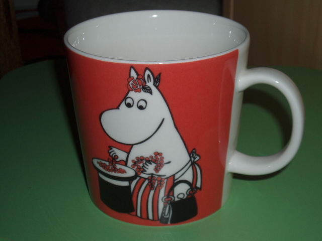 以前もムーミンのビスケットを買ってきてくれた彼女。このマグ、ちゃんとアラビア社製だ!感動。このへんのお店でも同社製のムーミンが売られてるけど、値段が高いのだ。