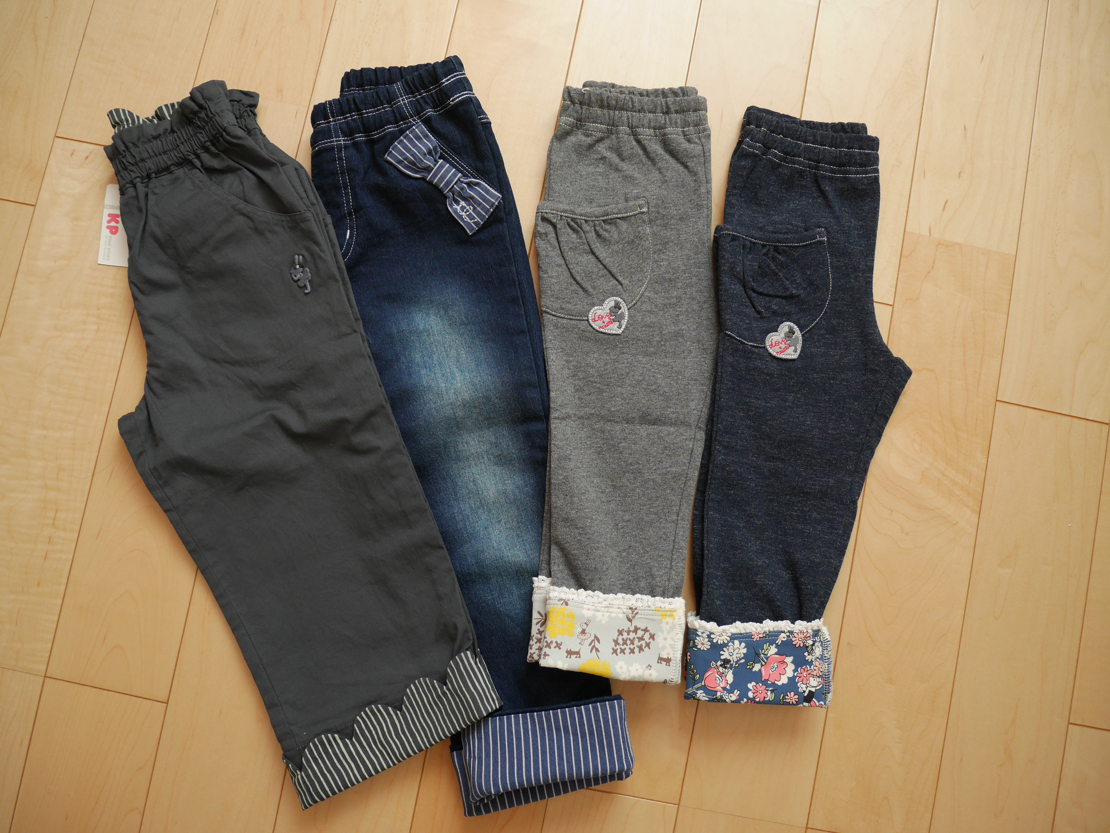 こんにちはみもりですKPのお洋服が届きましたのでその記録です。1月15日に子供服ジョリィ楽天市場さんで時報ポチしました♪みごとにボトムスばかり。しかもすべて先買いですセールだとどうしても先買いしたくなります。デニム風ニットツイル柔らかパンツ チャコール&紺 100㎝2150+税トロワラパン ストライプ切り替えストレッチデニムパンツ 110㎝2450+税裾スカラップワイドパンツ 110㎝2950+税計算を間違えて送料650円がかかってしまいましたキッズピピさんで注文したKPも届きましたので後日UPします♪