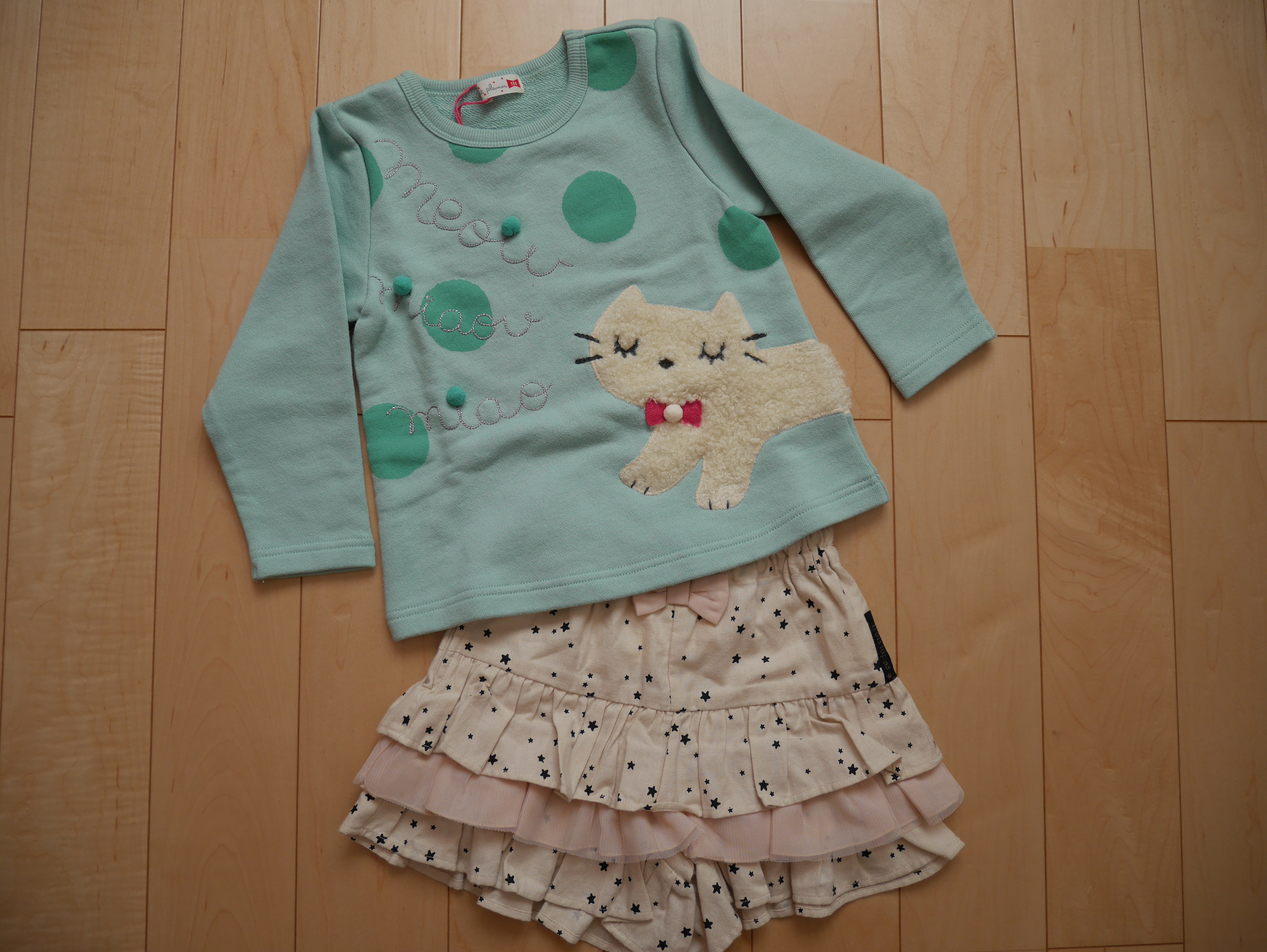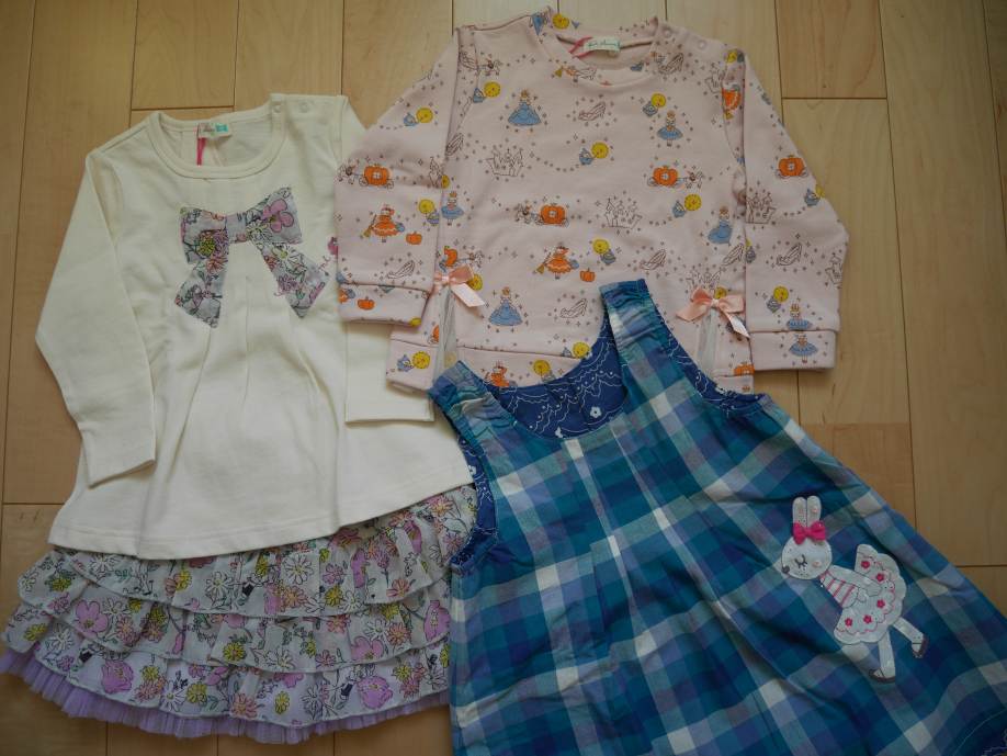 こんにちはみもりです。先週初めてKPの実店舗に行ってきましたので、購入品の記録に色違いのサイズアップで購入してしまったトップス90トップス100スカート100リバーシブルスカート本当にかわいいですすべて30%OFFでの購入です。いつも楽天で購入していて、実店舗は家から4,50分かかるので今までいったことがありませんでした。夏のセールにはまた実店舗に遠征しにいきたいです。楽天の50%OFFに時報ぽちで参戦した物が届くみたいなので、届きましたらまたUPします。