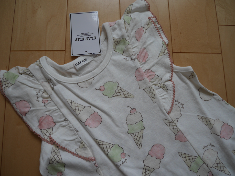 【50% Off】アイスクリーム チェリー PAKUPAKU 肩フリル ワンピース 子供服 女の子 BEBE bebe ベベ eab キッズ ジュニア カジュアル ワンピ 半袖 夏 1801-44008
