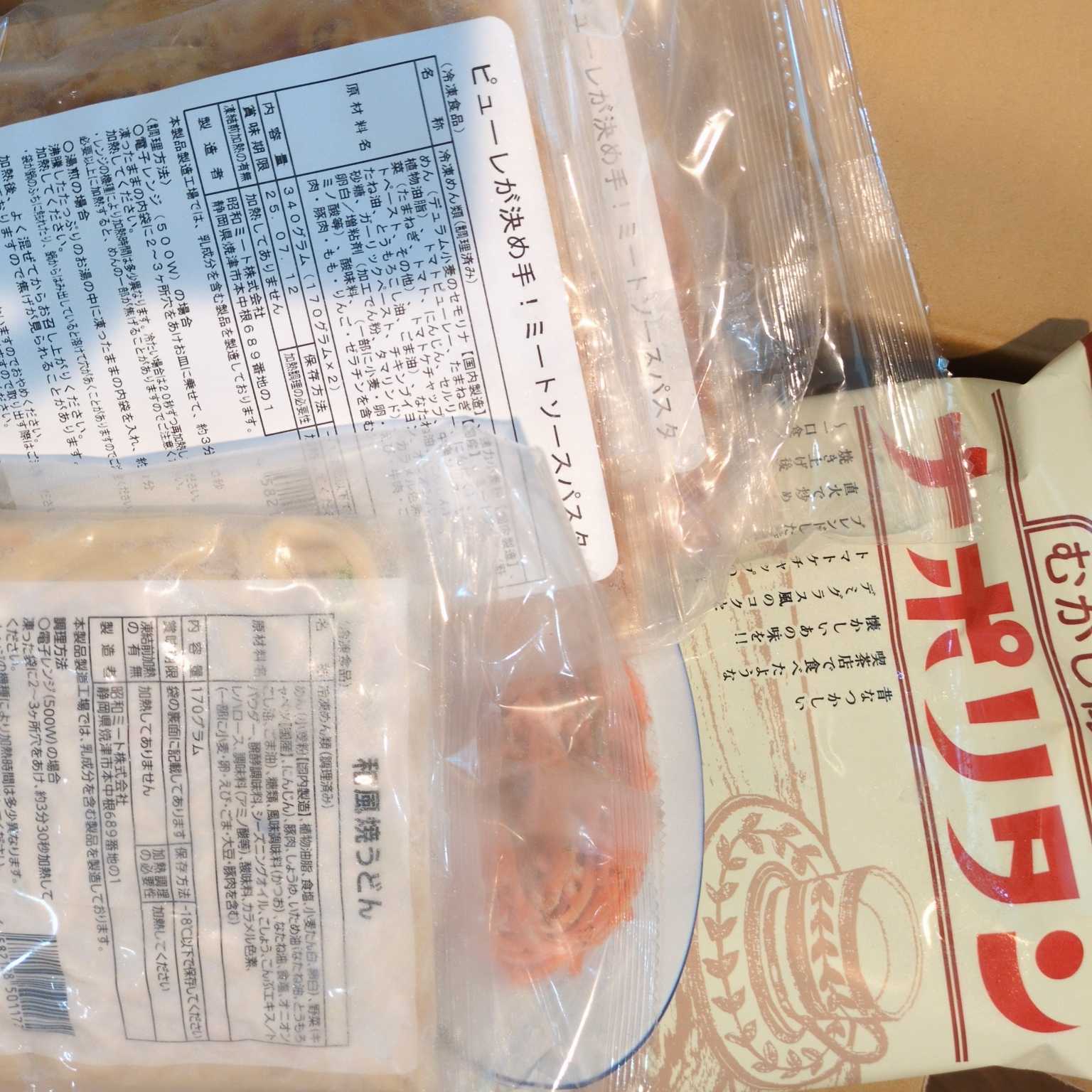 毎回何が届くのかは分かりませんが、焼きそばやナポリタン系、焼うどんとかが届くかな。