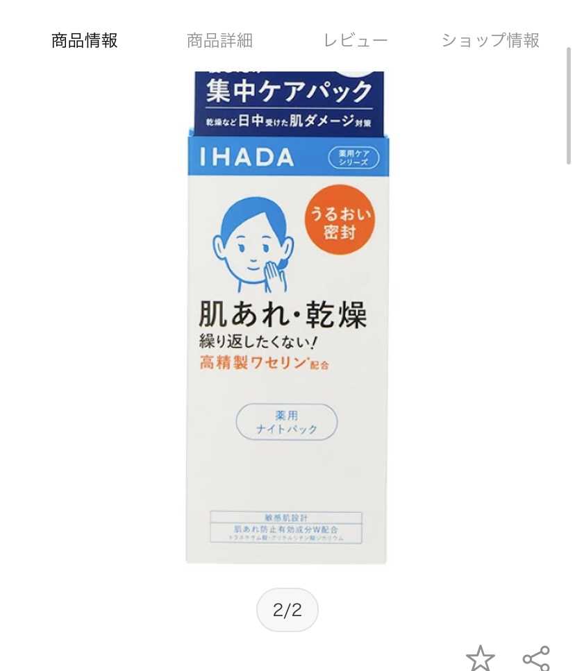 https://a.r10.to/h5fUIF繰り返しがちな肌荒れ・乾燥を防ぐ、夜の塗って寝るだけの集中ケアパック。肌荒れ防止の薬用有効成分W配合。日中に受けた乾燥などの外部刺激による肌荒れを防ぐ。また、高精製ワセリン(肌うるおいバリア保護成分)によるうるおい密封効果で、乾燥などの外部刺激から肌を保護し、うるおいをキープ。やさしく肌に広がるクリーミーなバームベタつかずに一晩中密封してうるおい続く翌朝なめらかな肌に⭐️化粧水☟https://a.r10.to/hkKlsCナイトパック☟https://a.r10.to/h5fUO0