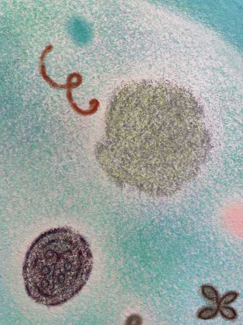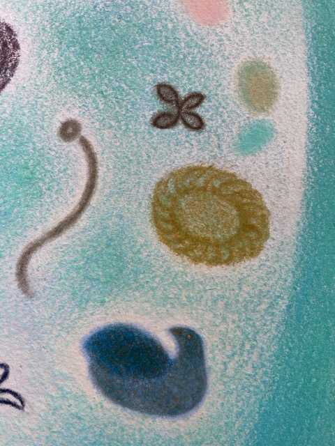 日常の会話や夢のなかで浮かんでは消えてしまうあれこれを描きとめる、作家自身にしか解読できないような絵日記のよう。和紙の繊維に色をからませて独特のやわらかさ、透明感、ふわふわと単純なかたちを生む表現にひかれます。/ギャラリーモーニング