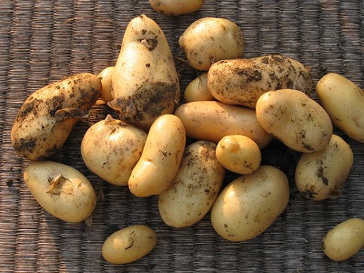 メークインを試し堀しました 探り採りとも言いますがまだ小粒ですが 新ジャガの味を楽しんでます味噌汁に入れたりふかしたりまさに旬の味ですね
