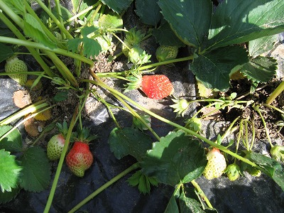 苺が赤くなりました 今年はマルチをして育てています肥料も油粕をあげました 一番絞りの油粕ですJAのセンターの兄ちゃんが薦めてくれましたビールじゃあるまいしと思いましたがさすが一番絞りですね 油のいいにおいがします苺も甘くておいしいですよ 連休は孫と苺狩りをしましたすごく喜んでました
