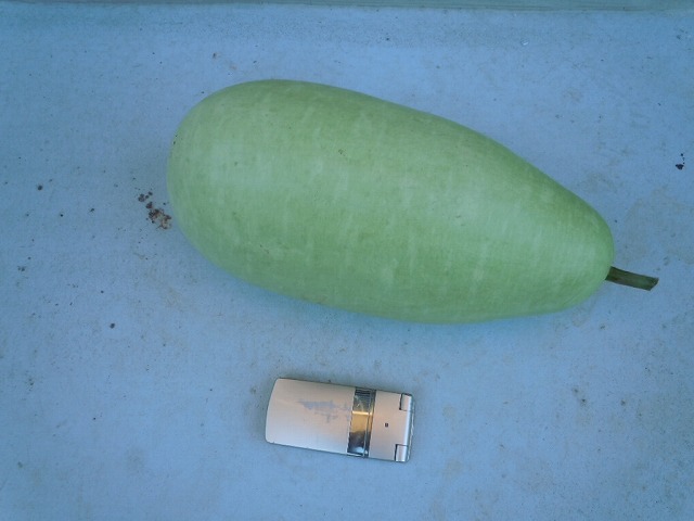 冬瓜ですか こんなに大きくなりました苗をたくさんいただいて植えていたら畑の隅っこに出来ていましたさーあ どうして食べるのでしょうかお盆が近づいて来ました お墓参りにも行かなくちゃ