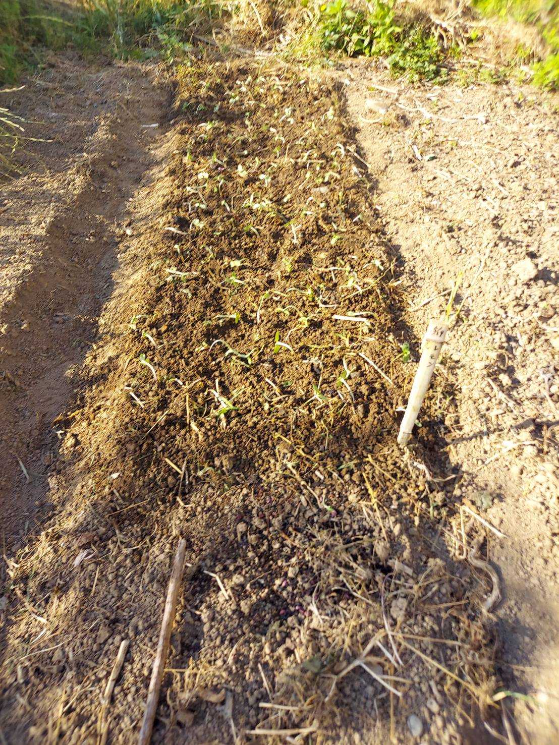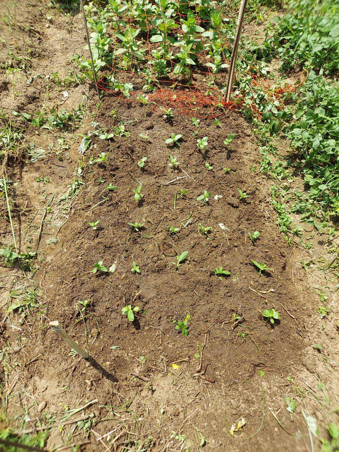 鶏頭の緋紅色を植える。第一畑。160本。200のセルトレーに160で発芽率は80%。発芽率はまあまあだ。鶏頭は紅貴と緋紅色を植えている。それぞれに特長があってなかなかよろしい。 5月20日に植えた紅貴。今日植えた緋紅色の隣に植えている。