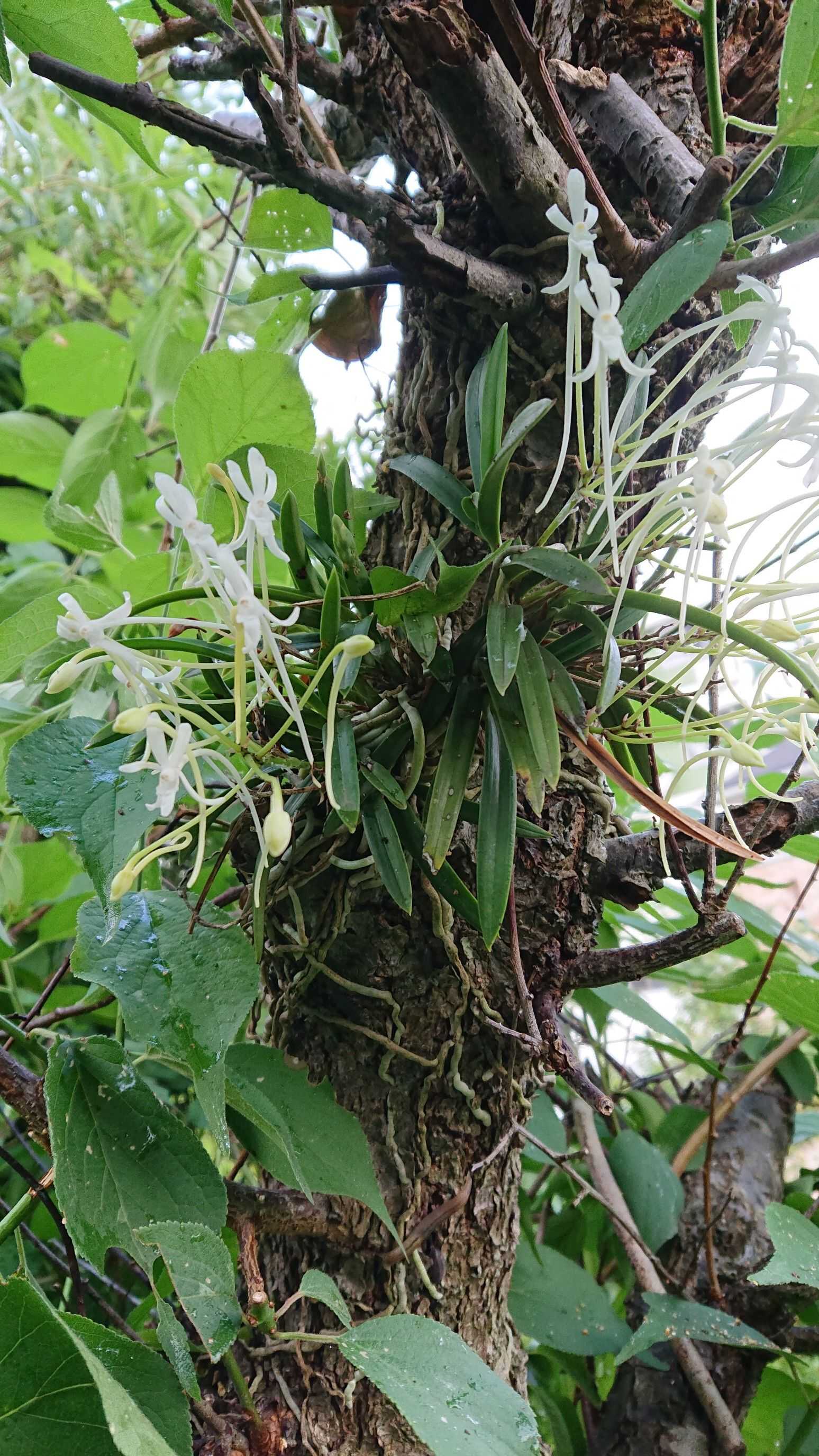 風蘭が咲いたよ。一年に一度咲く。いつ咲いていつ枯れるかわからない。短い命や。近くによると微かないい匂いがする。千両の実が出来ている。万両はたくさんあるが千両は相性が悪く何度植えても育ったなかった。今朝庭に出てみると庭の奥に実をつけて大きく育っている。