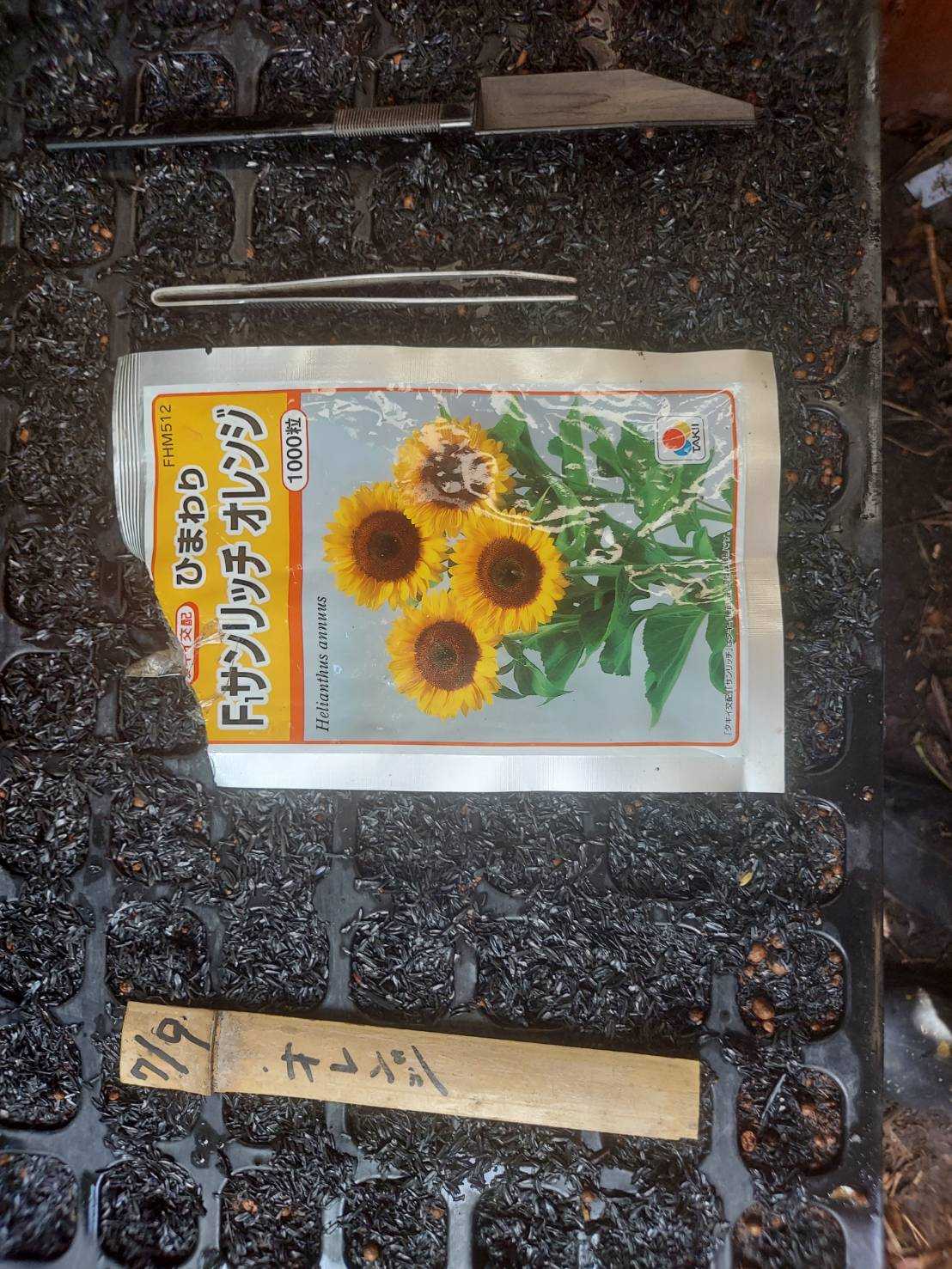 ひまわりのオレンジ種蒔き終了。124穴。第一弾が3月25日。今日で8弾目。128✕8=1040-4=1036本。よく撒き植えたものだ。今年の発芽率は85% でも徒長苗が結構あった。芽がでると日にあてること。でも暑い日差しあてると枯れてしまう。その手加減がむつかしい。 四月の一日にとうもろこしと鶏頭の紅貴を霜で全滅させた。四月に霜が降るなんて初めての経験。夜は外に置きっぱなしにしないこと。今の時期なら5日くらいで芽が出るが三月末だと芽がでるのに10日以上かかる。良い経験をした。
