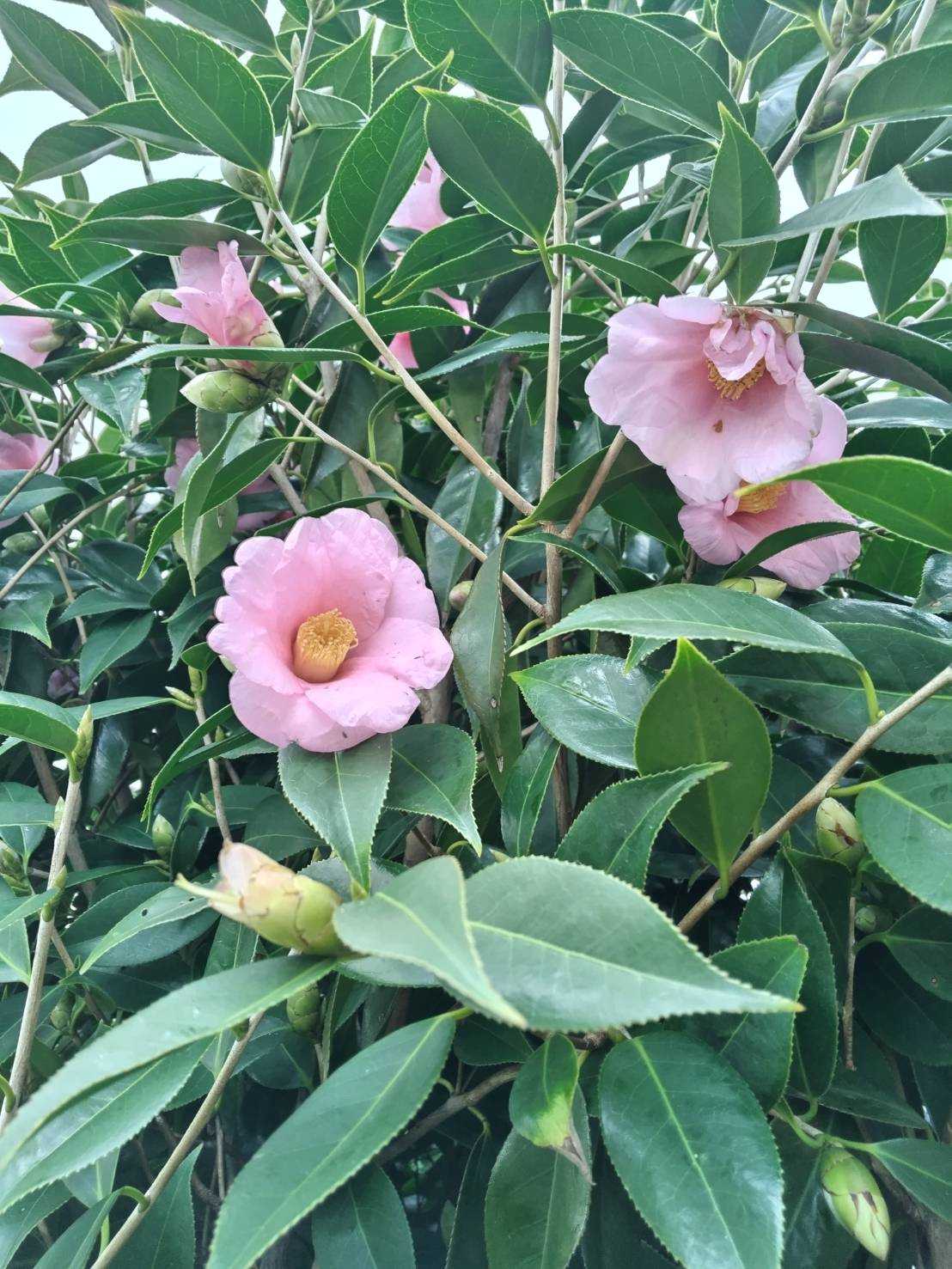 椿の胡蝶侘助。毎年かわいい花が咲く。椿。名前は知らない。昔 義兄からやぶ椿を継木してもらったつばき。ようやく根着いた千両。庭の奥に咲いている。今年は実をたくさん着けている。株もたくさん増えている。