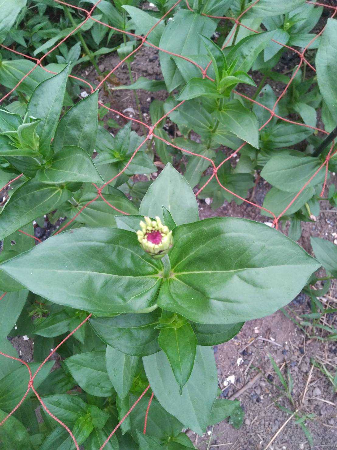 百日草のダリア咲き混合のつぼみが膨らみかけた。あと数日で花が開く。ちょうど前に植えた百日草も終わりに近づいている頃。ガンバ レレッドサン。
