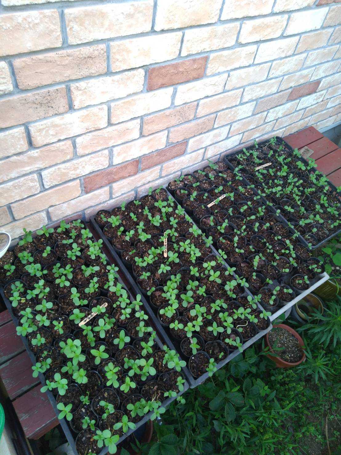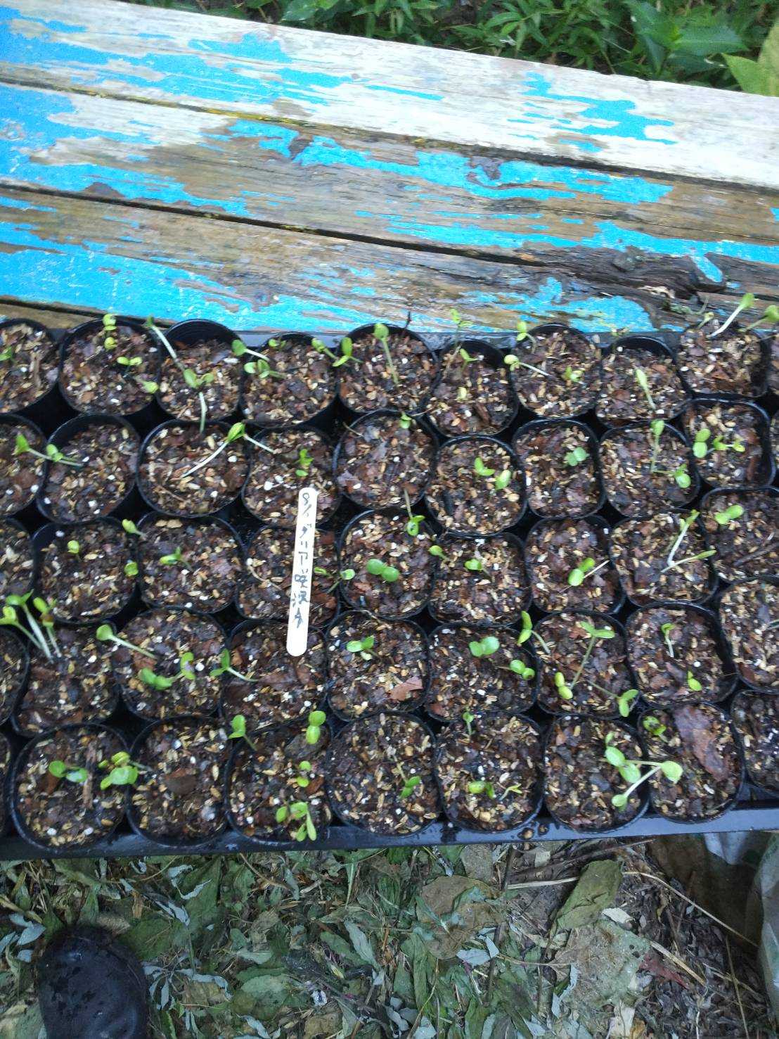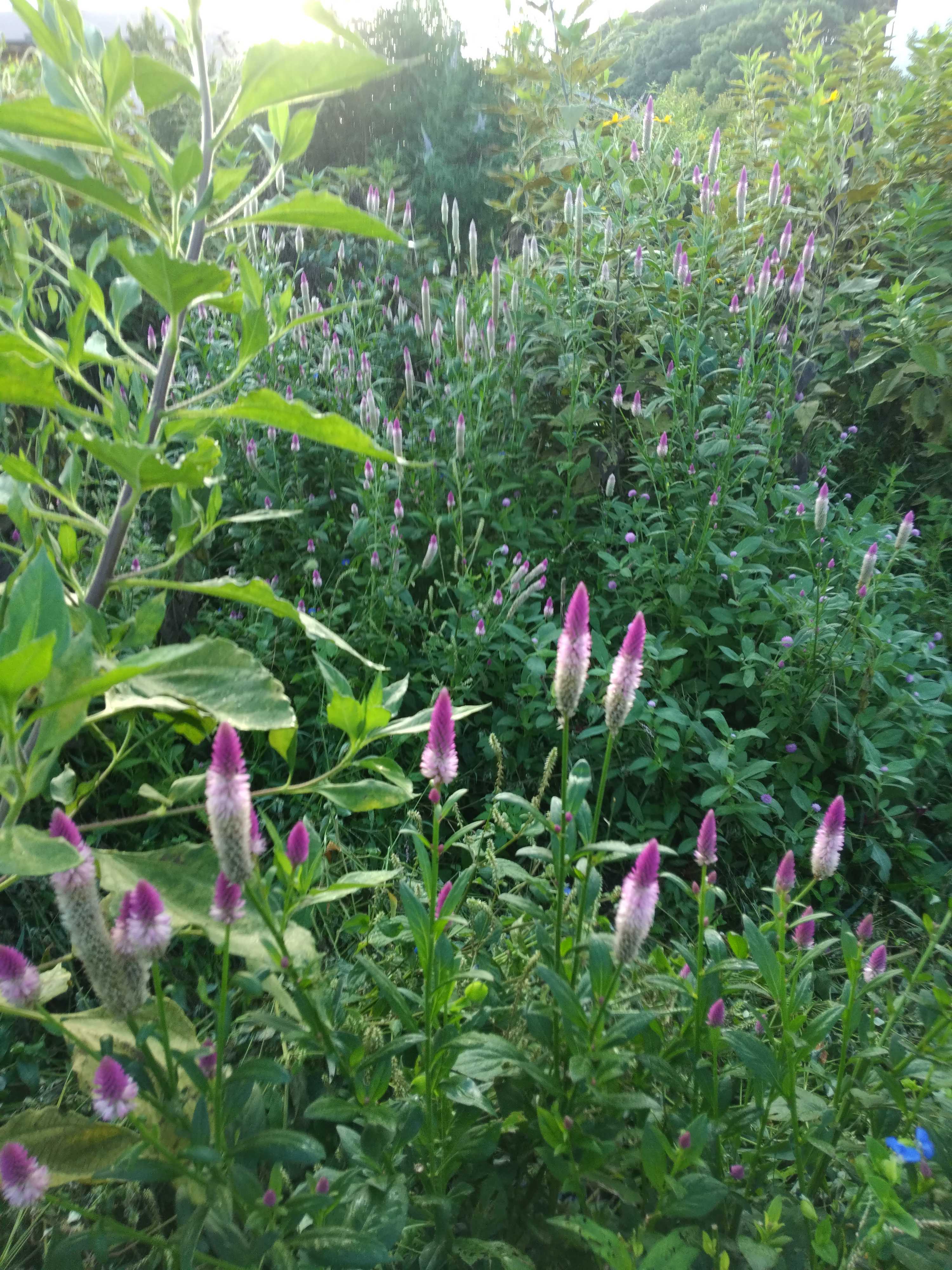 鶏頭の紅貴植える。昨日は70本。今日も70本。合計140本。この暑さだ。まだまだ大丈夫だろう。春には発芽が悪かったが筋播きをするとよく芽が出た。苗は群生で8本くらいある。最初は全部まとめて植えていたがはたと考える。大きくなると間引きが必要になる。ならば分けて植えてもいいのか。セルトレーならば1本植えだ。ということで根分けして2から3本で植える。シャロンの群生。そろそろ採取できそうだ。パンキーレッド。来年はこれをもっと増やしたい。