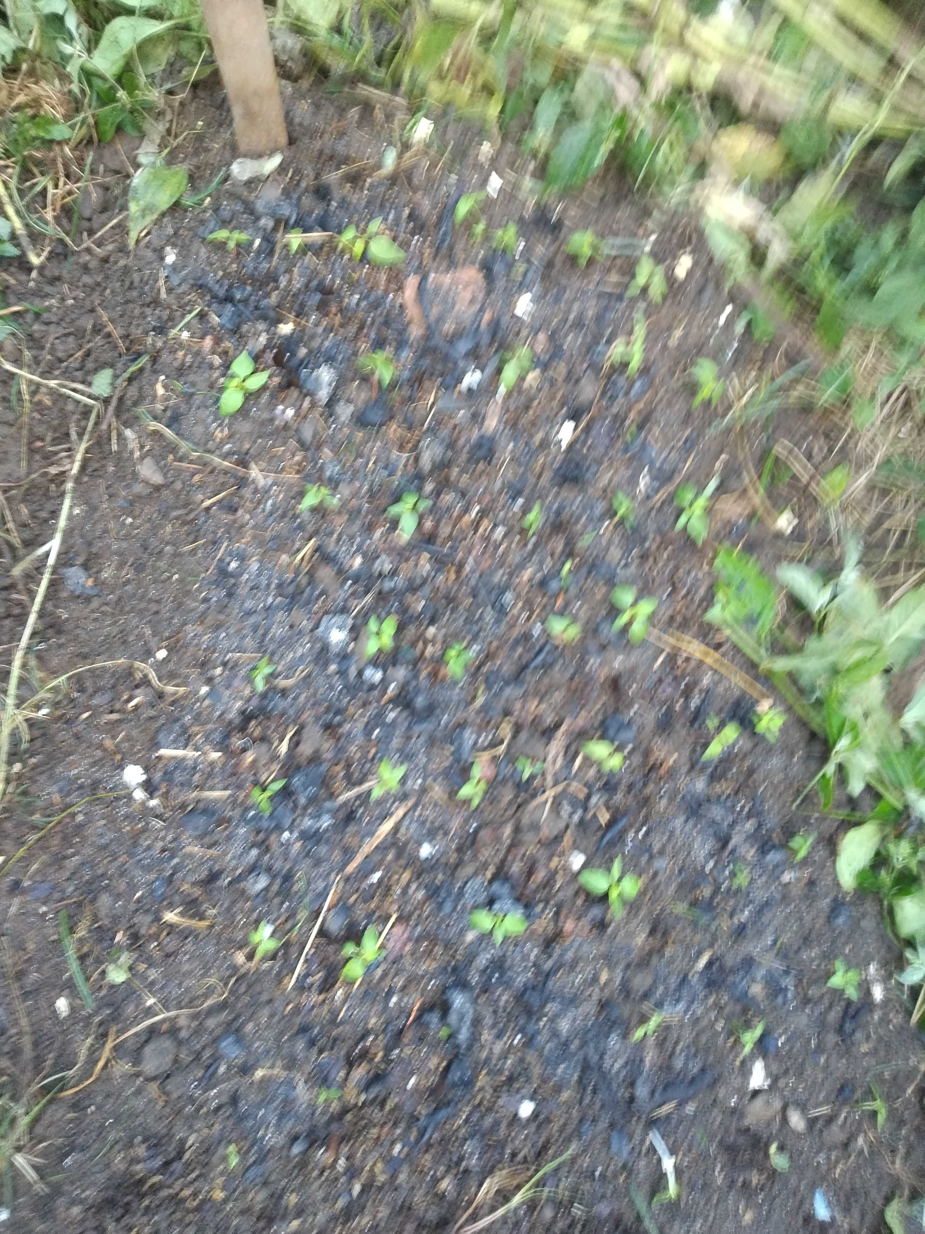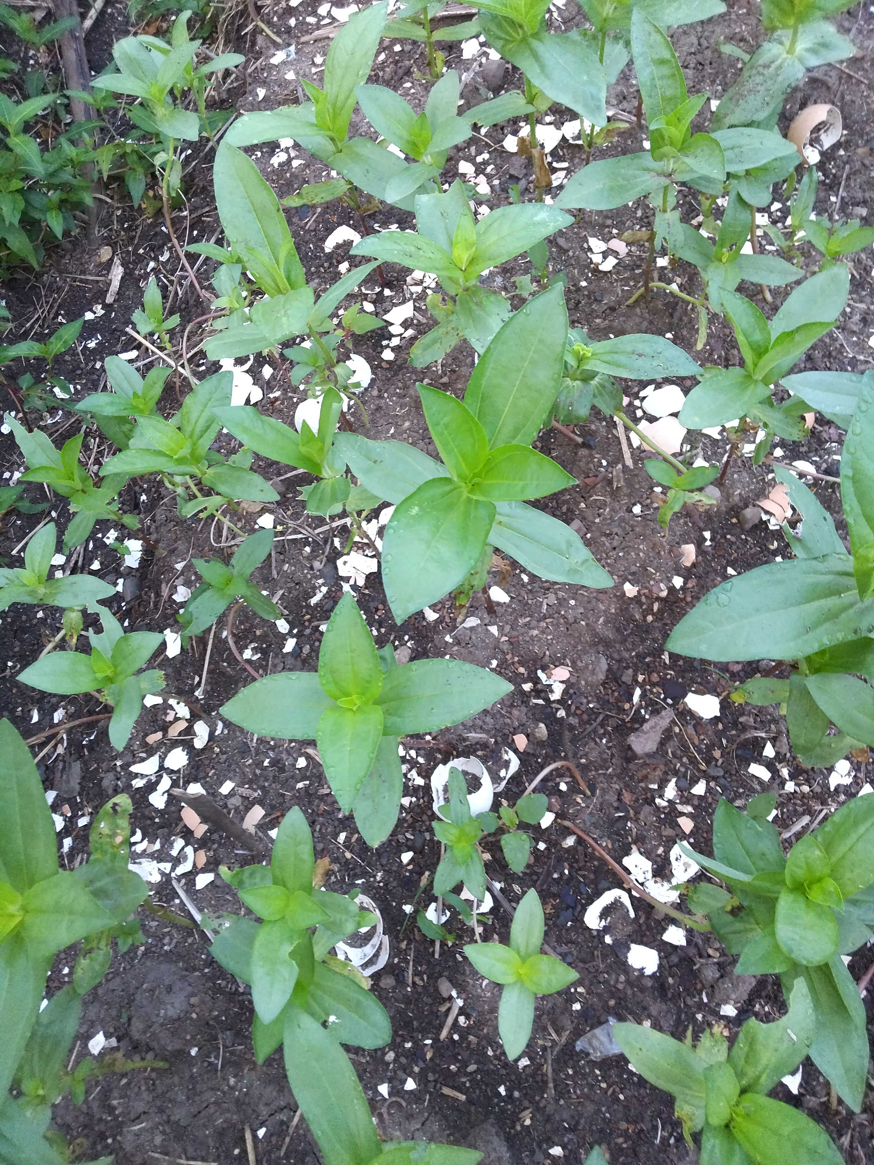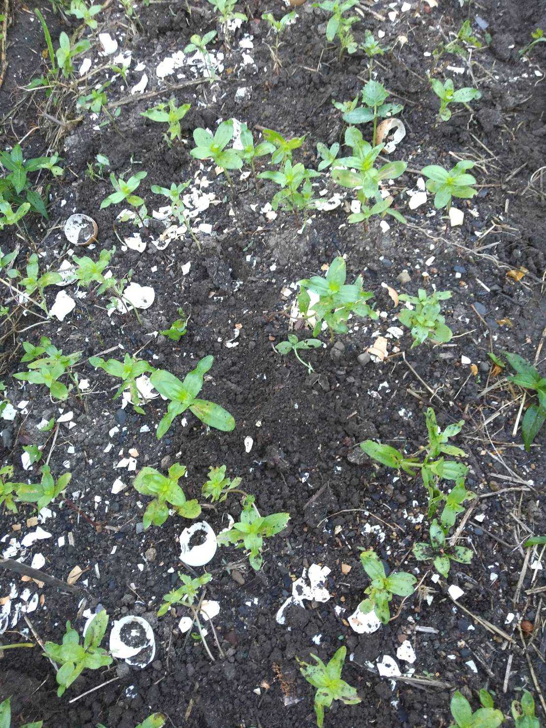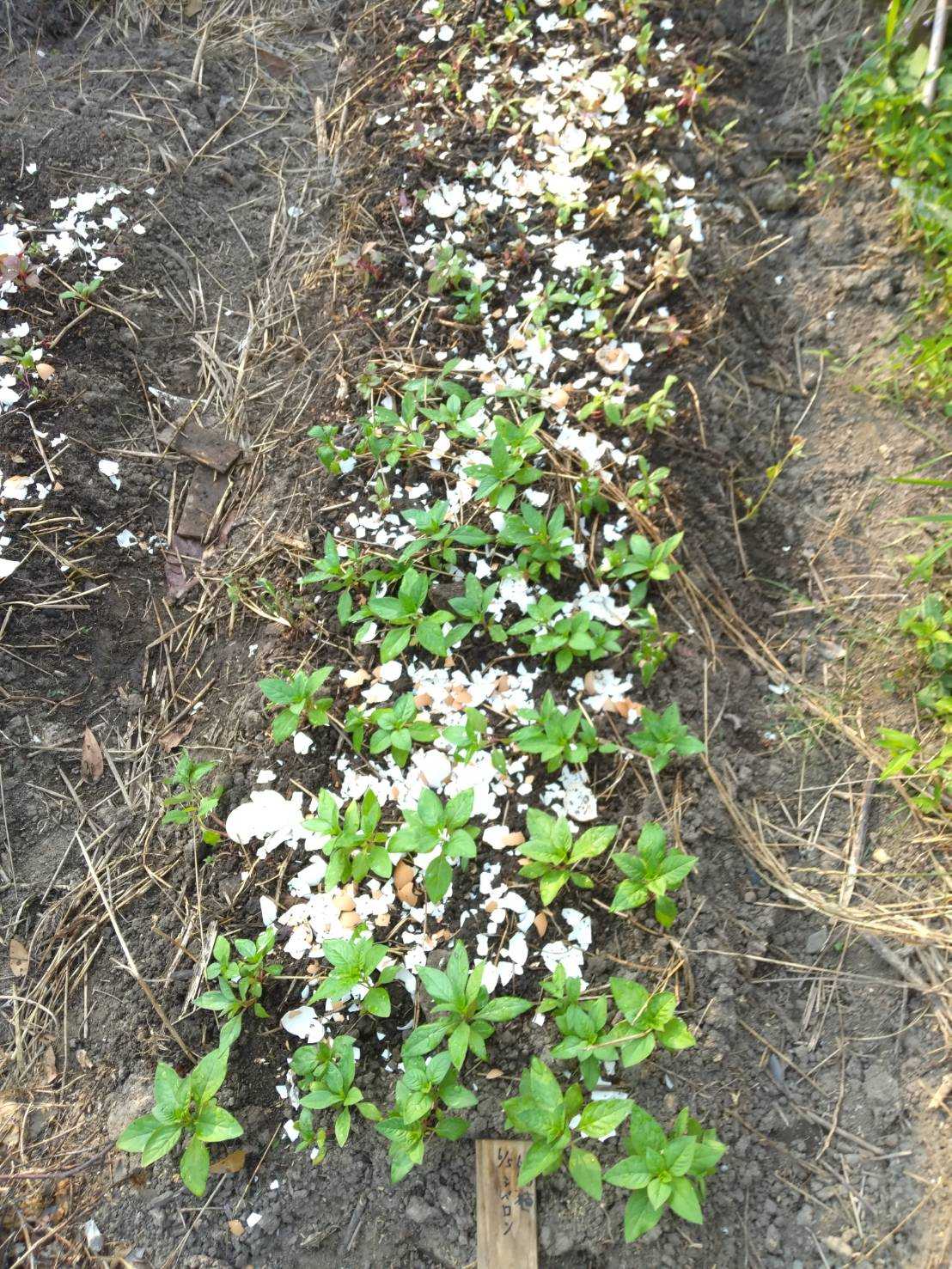 灰をまく 灰はカリ成分で花つきがよくなるらしい。 枯れ木に花を咲かせましょう。まさに令和の花咲か爺さんだ。 シャロンも千日紅も立派な花を咲かせるでしょう。白いのは卵の殻。千日紅に花が咲いている。