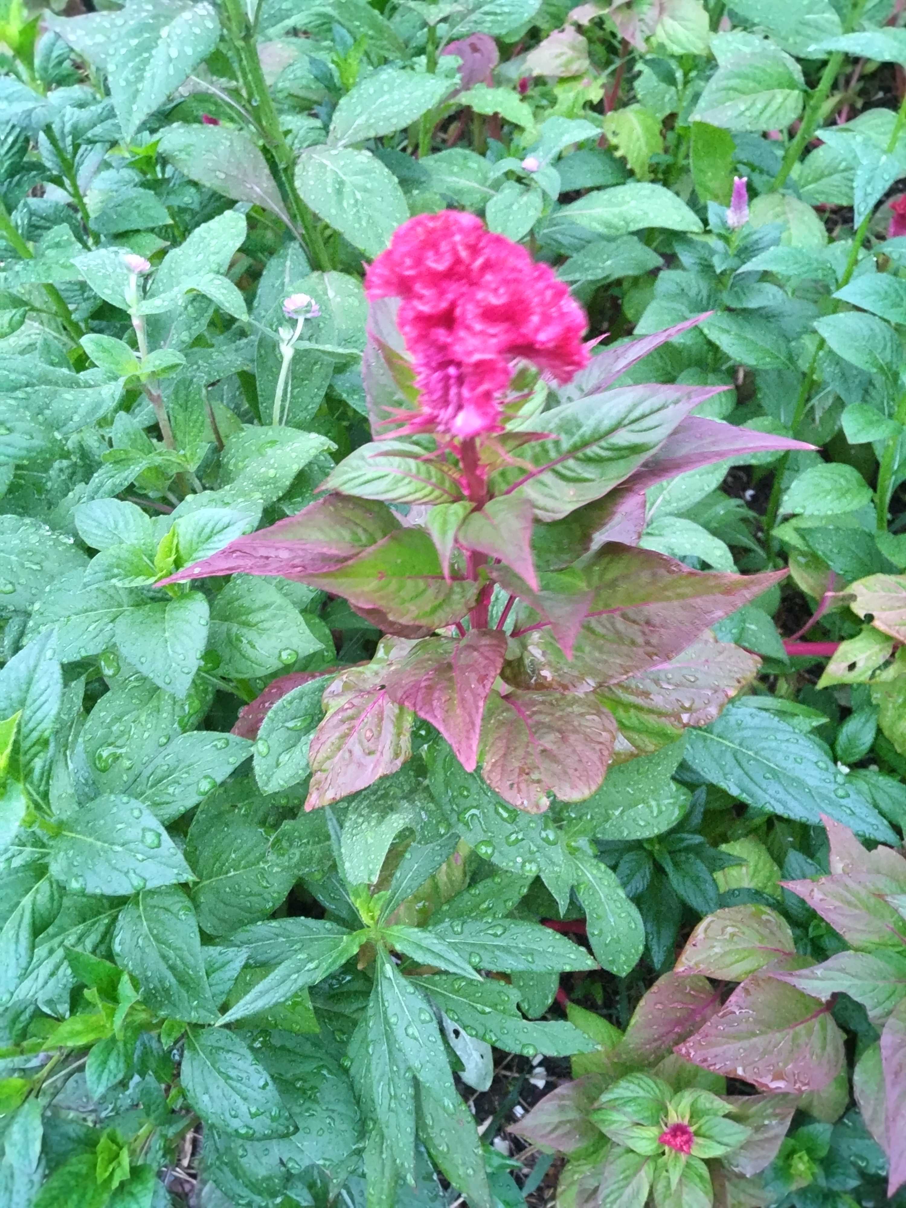 シャロンが咲き出した。ようやくだ。群生はいつ見れるのだろうか。 鶏頭の紅貴も元気だ。千日紅も咲き出した。