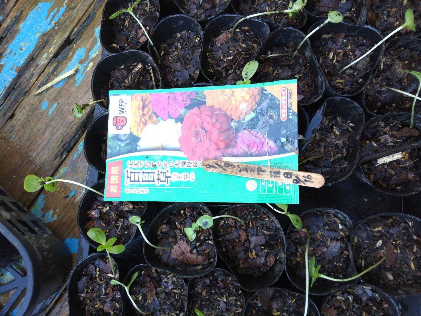 百日草のお徳用の苗をポットへ移す。お徳用ってどんな花が咲くのだろうか。先日植えた百日草。こんなに大きくなった。花が咲いている。
