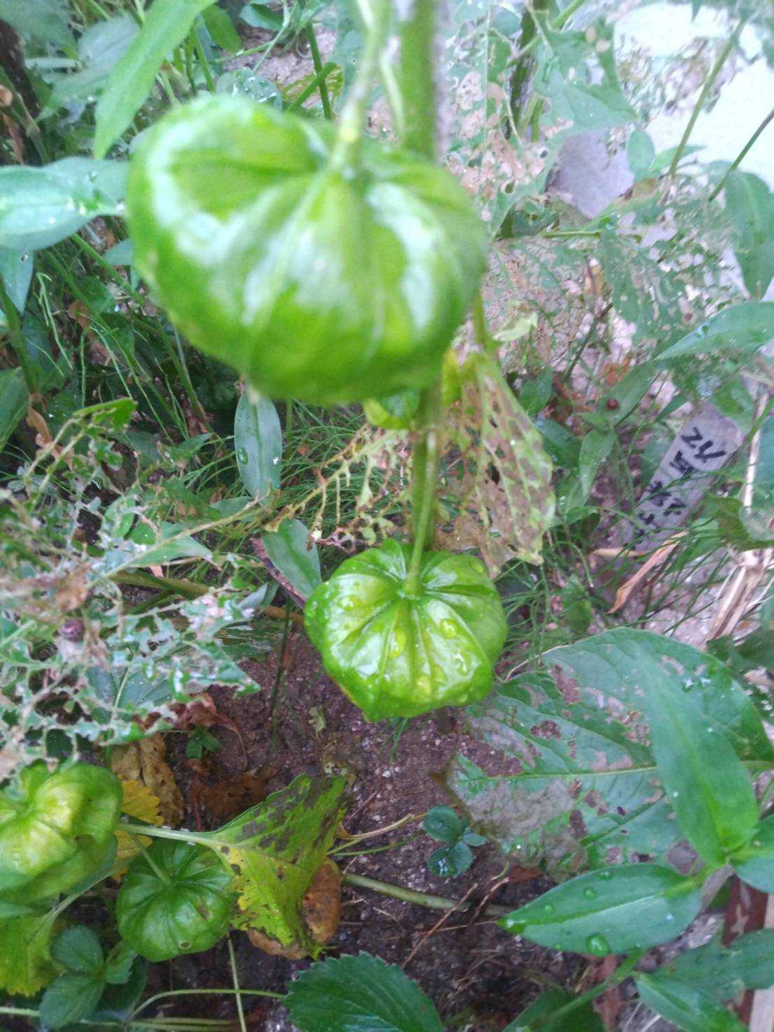 ほおずきの実が出来ている。鬼灯とも書く。赤鬼灯もいいけど青鬼灯もいいね。 我が恋や口も吸われぬ青鬼灯 嵐雪トウモロコシ毎日一本食べる。雨が降らないから育たない。