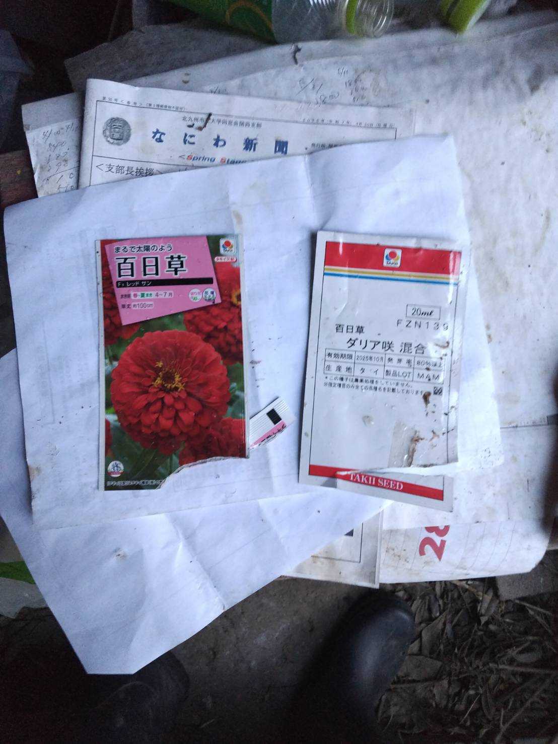 百日草の種蒔きをする。まだ種が残っていた。ダリア咲き混合とレッドサンだ。百日草はたくさん植えたが名前がわからなくなっている。まあいいだろう。花が咲けばいいのだ。育苗箱に筋播きをする。セルトレーがいいのか筋播きがいいのか。答えはまだ出ない。 鶏頭の紅貴。今年は断然少ない。芽が出なかったのだ。200穴のセルトレーに種蒔きを毎年しているが発芽率が悪い。途中で育苗箱に筋播きをする。まあまあ芽が出たがそのまま植えるのは不安だからポットへ移してから定植。すごく手間がかかる。来年は128穴のセルトレーにしてみるか。試行錯誤の日々が続く。 鶏頭の花が咲いている。鶏頭の十四伍本も有りぬべし 子規 高1の現代文に載っていた。当時はあたりまえやんか。鶏頭の花が十数本咲いているだけの話だろうって。その当たり前の話がいい。 ヒマワリの追加植え。発芽がそろわず芽が出る度に追加植え。白いのは卵の殻。肥料とヨトウムシ対策だ。