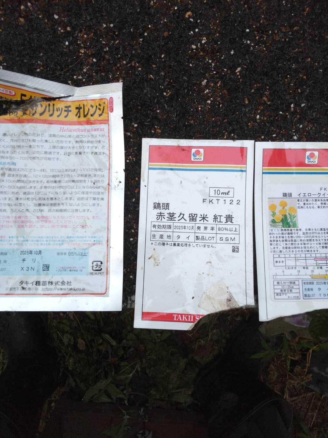 秋撒き野菜のレタスの種まきをしょうと準備する。説明書を見ると20度以上は発芽しにくいとある。もうしばらく種まきは伸ばそう。 まだ残っていた種がある。ヒマワリ 鶏頭だ。早速種まきをする。筋播きにした。シャロンと千日紅が咲いている。