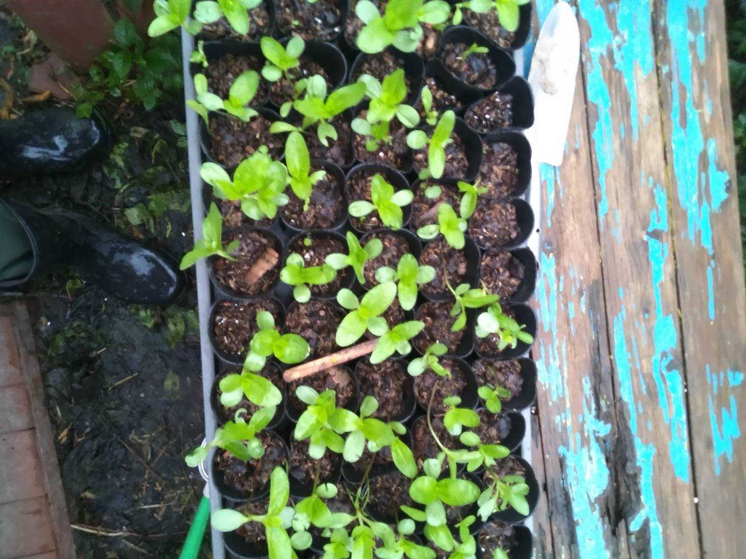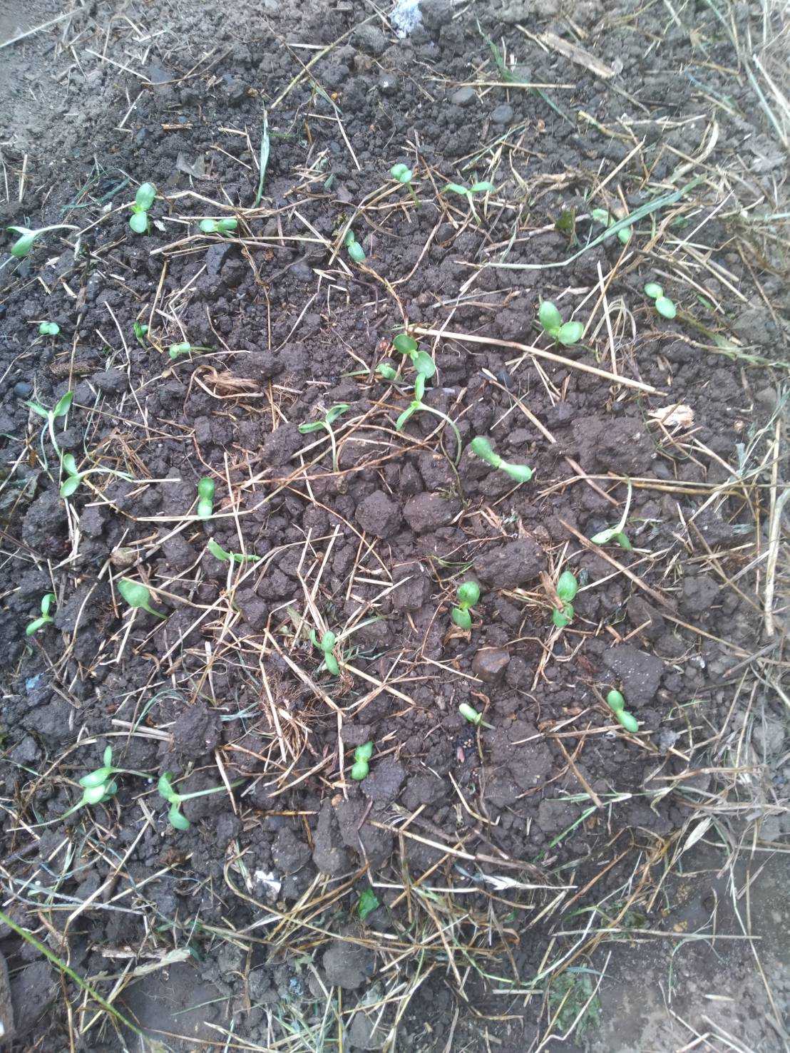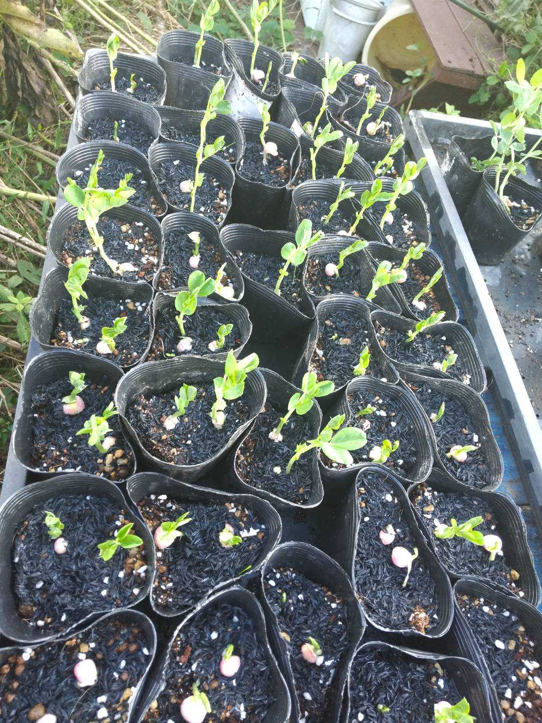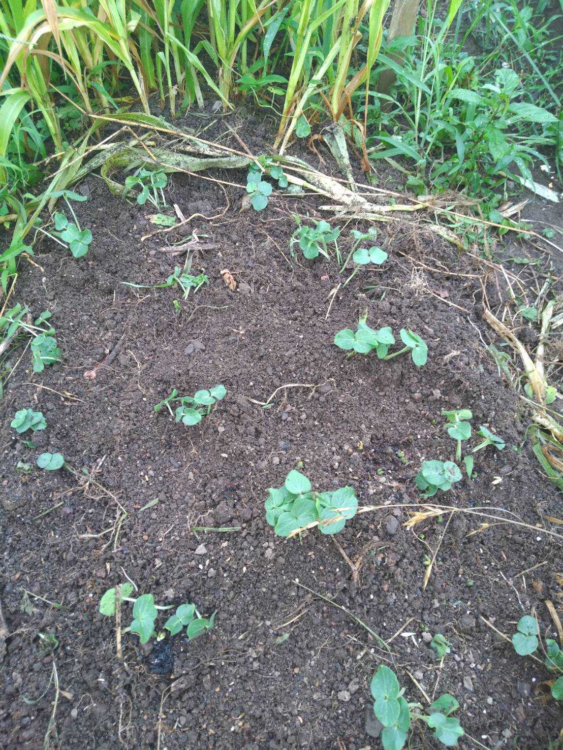 グリーンピースの種蒔き 発芽率良好 美味しい豆ごはんが楽しみ でもまだ先の話秋名菊が咲いている