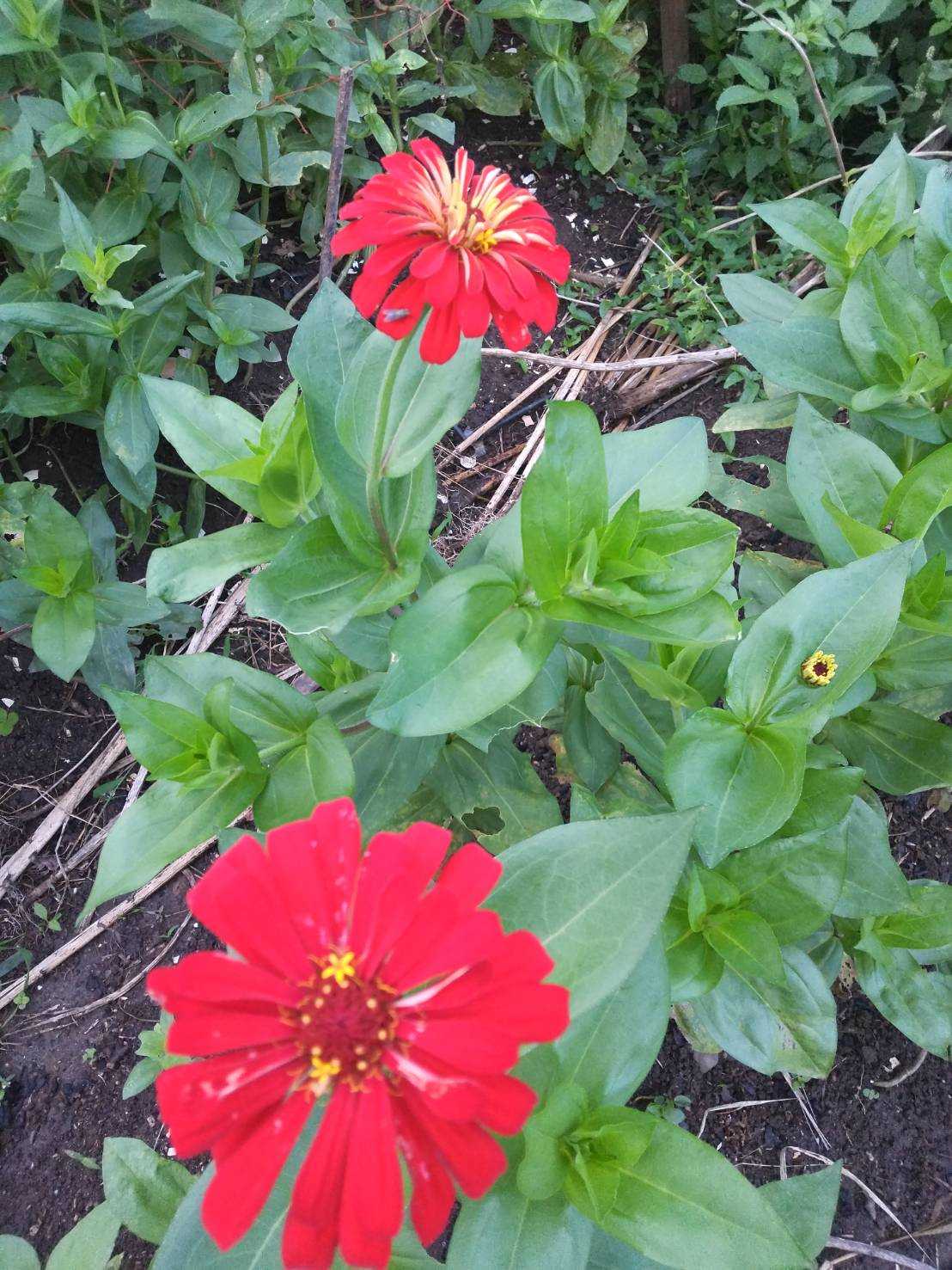 百日草のレッドサン植える。はじめての品種だ。 シャロンが咲いている。切るとわき芽が盛んに出て次から次に花が咲く。