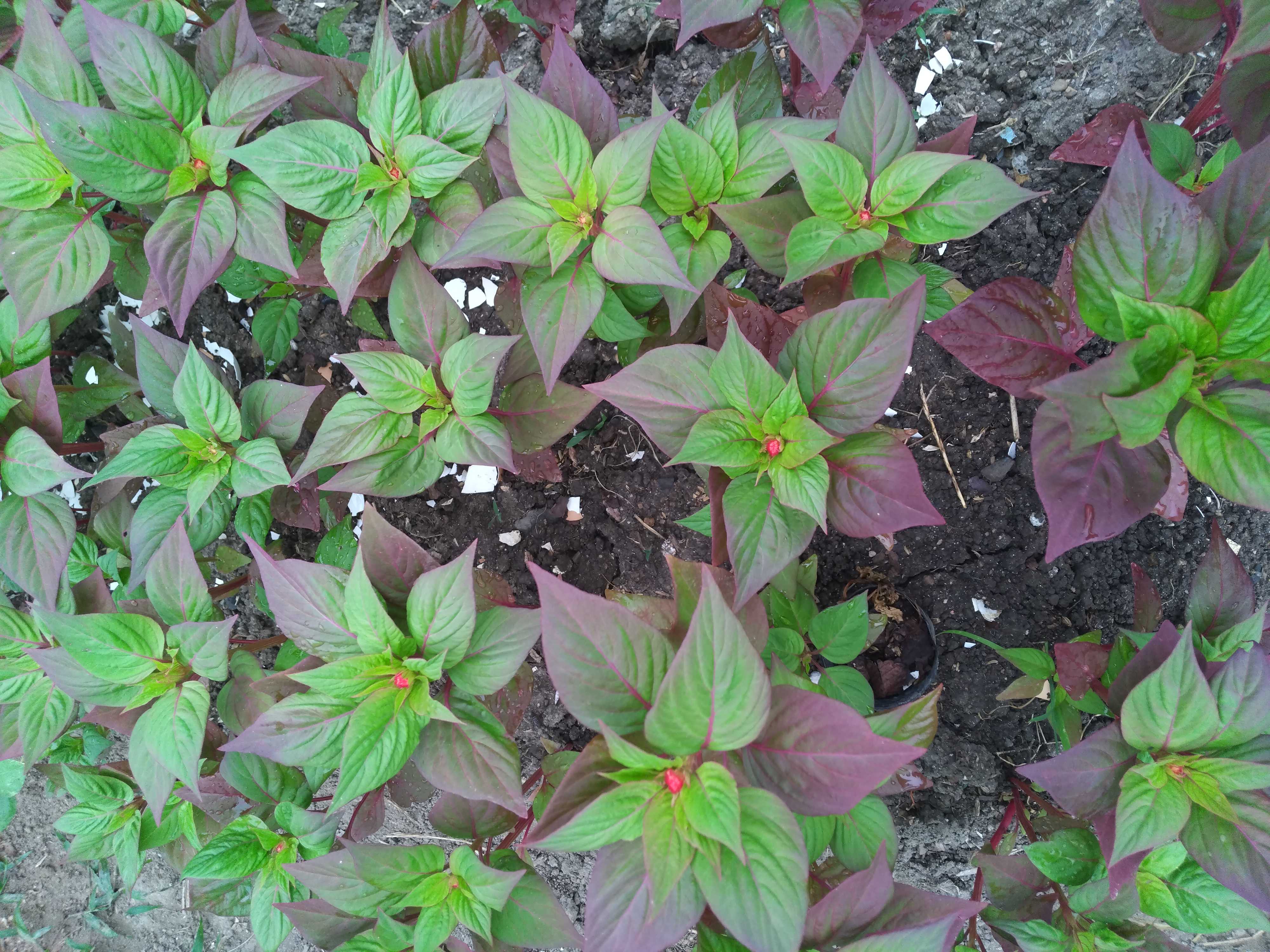 千日紅が元気だ。少し摘芯をする。摘芯はなかな出来ない。いつの時期にするのか。せっかく出来ている茎を切るのはしのびない。でもするとしないでは花芽の数がだんぜん違う。 美女なでしこ。白もいいね。 今年は群生とはいかない。相当植えたつもりだが手入れが悪く花数が少ない。 今日の朝食。採り立てはうまい。 小ニの孫に持って行ってやろう。胡椒の鷹の爪とバジル。