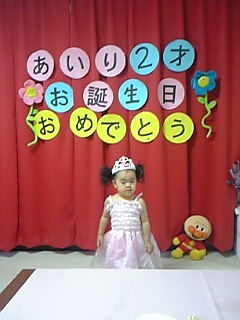 無事アイリ2歳の誕生会を終えました♪ プレゼントは予想通りアンパンマン攻撃!!全員アンパンマンでしたでもアイリはすごい興奮しててとても喜んでました(^^)めぐみ、ちびた、かおり、洋平、アイリに素敵なプレゼントをありがとう! 例のアンパンマンのケーキ、箱から出した瞬間キャーq(≧∇≦*)(*≧∇≦)pキャーって大喜び♪ケーキを切る時、泣かれるかと思ってたが嬉しそうに眺めてました(笑)そして見事全部平らげました♪アイリ、たくさんのプレゼント&たくさんの人から祝ってもらえて良かったね(^^)