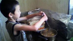 一人で作った方が楽なんだけど、一緒に作ったほうが、良いような長男のカレー作り長女の餃子つくり