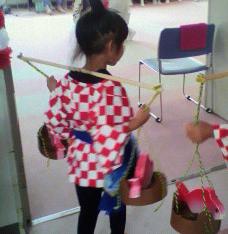 日本舞踊の小道具・衣装はほとんどが手作り。ハッピは、お師匠さんの手作り。魚・桶は旦那の担当。なんてない魚だけど、一匹一時間ぐらいかかってます一番手間だったのが、紐。なかなか良い色が見つからず、結局布を裂いてたものをよって編んであります。旦那が数日間、夜なべして作りました何回か、試作を重ねての完成です。どんなに頑張って作っても、お師匠さんの一言で作り直し・・・でも、そのお陰で発表は無事成功それまでの練習や準備は大変だけど、その分他の人の舞台を、また違った目で見るように なりました。何事も、表舞台は華やかに。その為には、努力は惜しまず。でしょうか。