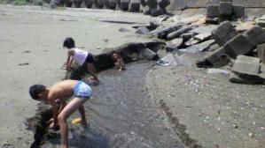 実家に帰る途中、二見海岸で貝拾い。のはずが、誰一人貝を拾わず次男なんか、勝手に服を脱いで、スッポンポン