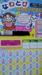 ダイソーで、面白い物を見つけました。思わず、購入。 一日の目標回数を決めて、一ヶ月の目標回数を書くんですが、一応、本人に決めさす事に。私 「一日、何回飛ぶの?」長男 「1000回」私 「一ヶ月を、30日としたら、一ヶ月で何回になる?」長男 「3000回」私 「それは、3日分や」長男 「10000回」私 「計算してから言えよ。1000×30やろ」 長男 「あ~、30000かぁ」30000回って、すごい数だな・・・。ちなみに、長女は一日100回。一ヶ月で、3000回か。