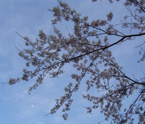 夕方遠くに月を見ながら花見酒といきたいのですが、残念なことに体質的にアルコール受け付けません。桜を見て楽しんで、アルコールを飲んで楽しんで、飲める人は2重に楽しいんでしょうね。