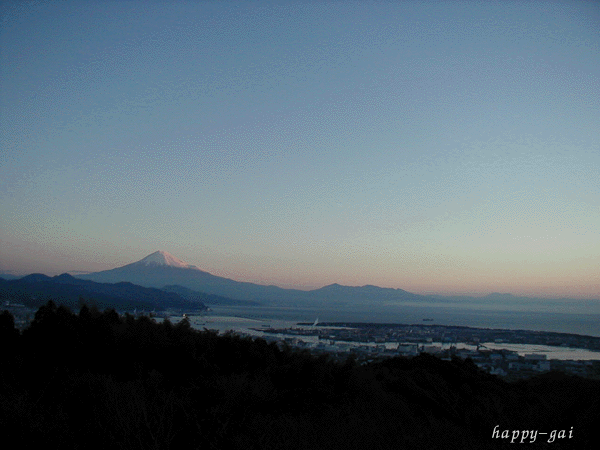 今朝も穏やかな朝であった。雲もなく、風もない。日の出を見た。気持ちがいい。今日の富士山は、日の出直後。清水港を望み、愛鷹山を従えて。