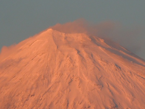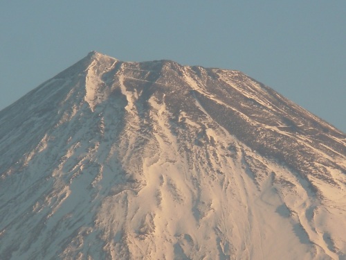 今日の岩本山からの富士山の山頂です。赤く燃えるような山頂の険しさが伺えます。