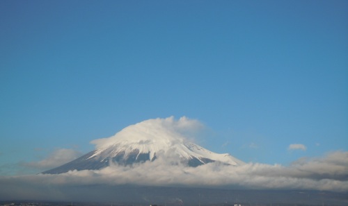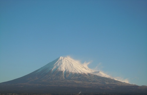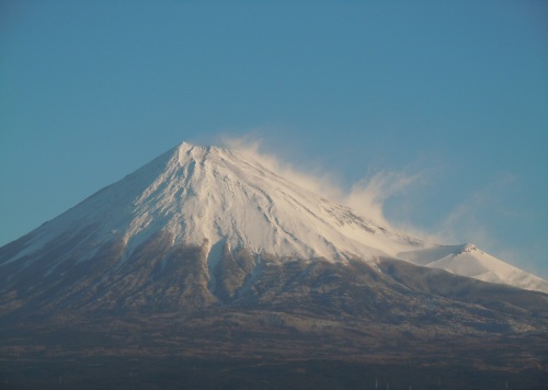 今日の富士山は風が強く、たてがみの様な雪煙です。