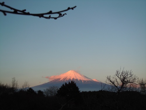 今日の岩本山からの夕景の富士山です。梅のつぼみは膨らんでいます。