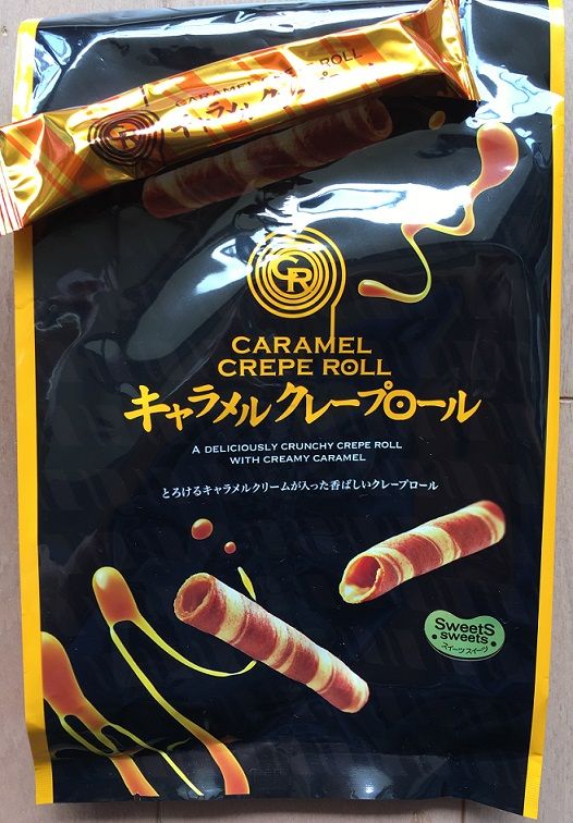 「中村屋」のキャラメルクレープロールサクサクとロールになっていい食感生地にキャラメルクリームが溶けていて美味しいいくつでも行けるが・・。(これは身内用の袋入りでお得だ)