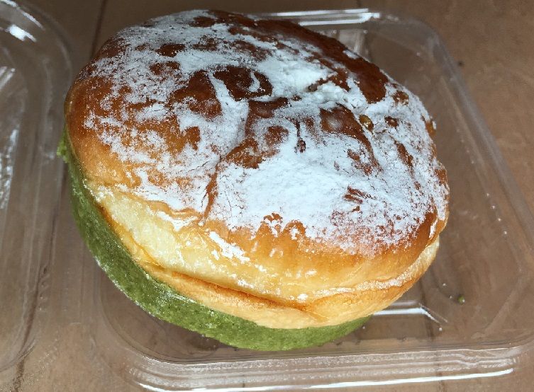 買わないようにしている揚げパンと餡ドーナツ!買ってしまった・・。抹茶の揚げパンで90円(コープ内のパン屋さんは安いのがいけない)