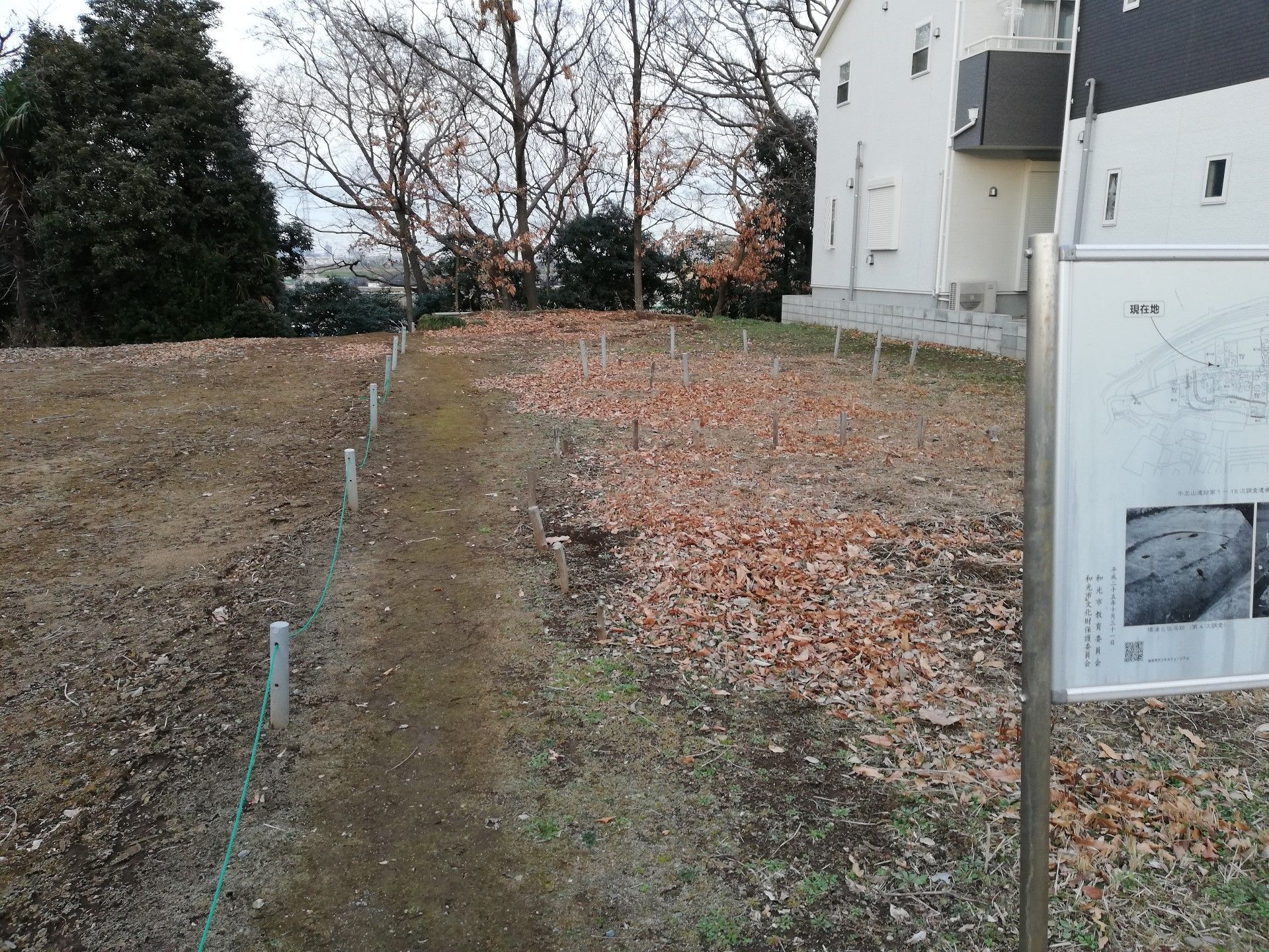 どんつきの先は、崖になっている。崖の向こうには、「和光高校」が見える。しかし、この遺跡付近に、ぞくぞくと建売の家が立ってきているぞ。