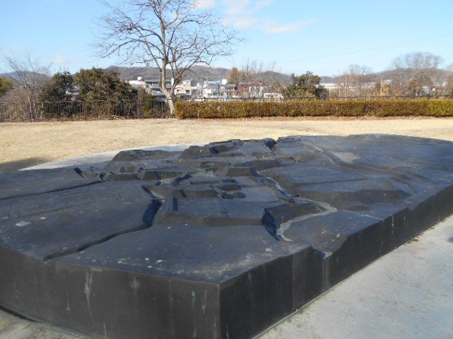 城の全体図と地形模型がある。しかし、この模型、もうちょっと低く作ってくれないと見づらいぜよ・・
