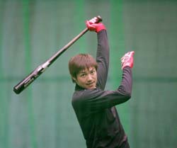 復活から不動へ-。レギュラーとして迎える今季、浜中は徹底したデータ研究を元にした“読み”で、目標とする100打点到達をめざす。