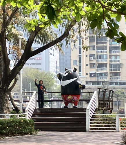 ホテルのサービスでもらった3本のドリンク内1本は、コーラだった。黒松沙士 とは? 当て字ではないね。御茶園 は、めっちゃ苦いお茶。青茶というのは、ニガウリのお茶?かと思うくらい苦いお茶なんだけどその2倍くらい苦いのが 御茶園。気を付けなはれやっ!あと1本はバドワイザーだった。やっぱり街のお茶屋さんで凍頂烏龍茶や阿里山緑茶などを買うのが一番美味しくて量が多くて無難。さて、最終日7日目。明日は帰国するよ。ホテルから歩いて行ける所にカラスミ通りと言われる製造直販のお店が並ぶ一角が有る。「好味珍」というお店がネットで評判良かったので入ってみたら冷蔵ケースがあってきれいな店でなおかつ値段も安いのでここで購入。頼まれたお土産と我が家の分。中くらいの値段(大きさで決まる)でふたつで1030台湾ドル。5000円くらい。頼まれた分はサービスで綺麗な箱に入れてくれた。海の方に歩く。アート街を通って再び「微熱山岳 Sunny Hills」に来たよ。何度訪れてもタダでお茶とお菓子を御馳走になれる。この日は、パイナップルケーキだった。めっちゃ美味しいよー。数日前に来た時 アップルとパイナップルを両方購入したから、もう買わなかった。回転式橋 大港橋の上からの景色。明日帰る前にもう少し買い物しよう。